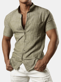 Herrenhemd aus Baumwolle und Leinen mit Henley-Kragen
